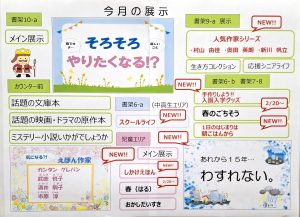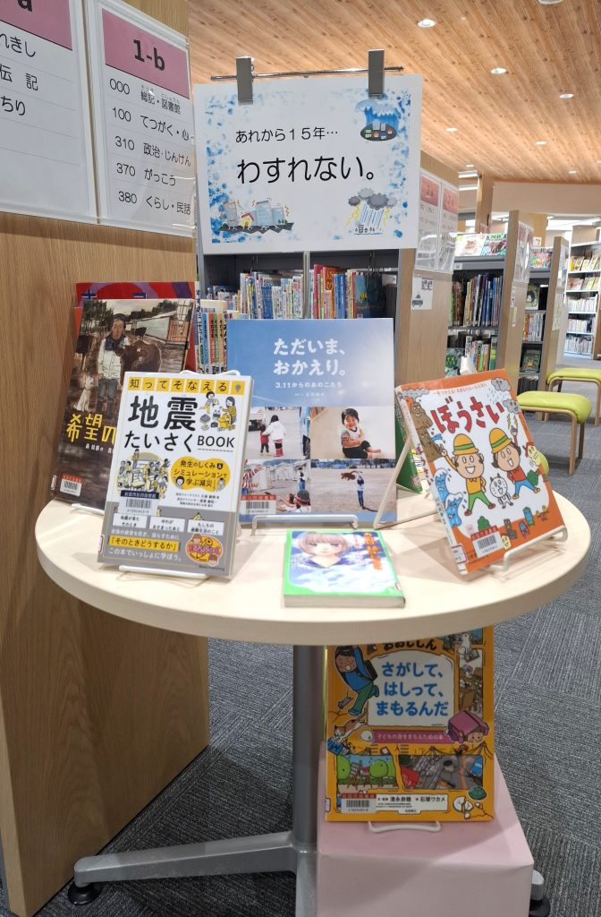 〔玖珂図書館〕児童展示 2026年3月10日 最終更新日時 : 2026年3月10日 図書館担当 目次壁面展示全体児童展示1『しかけえほん』NEW!!児童展示2『春(はる)』NEW!!児童展示3『おかしだいすき』児童展示9『あれから15年…わすれない。』NEW!!児童机上『最強王』『頂上決戦』『大迫力』絵本作家シリーズ『気になる⁈えほん作家』NEW!!えほんのへや 壁面展示全体 児童展示1『しかけえほん』NEW!! 児童展示2『春(はる)』NEW!! 児童展示3『おかしだいすき』 児童展示9『あれから15年…わすれない。』NEW!! 児童机上『最強王』『頂上決戦』『大迫力』 絵本作家シリーズ『気になる⁈えほん作家』NEW!! えほんのへや